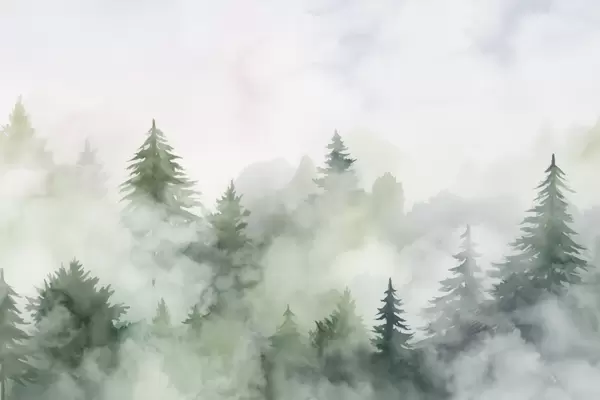 Poster Bos in mist imitatie van aquarel Nr f45343