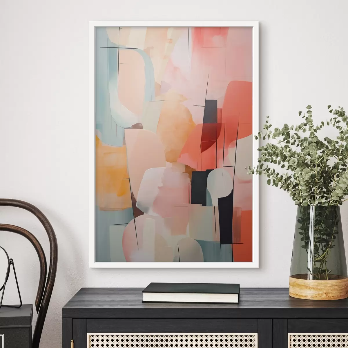 De poster bestaat uit een frame, plexiglas, geprinte afbeelding en spaanplaat achterkant. De poster kan meteen aan de muur worden gehangen dankzij de bevestigingen op de achterkant.