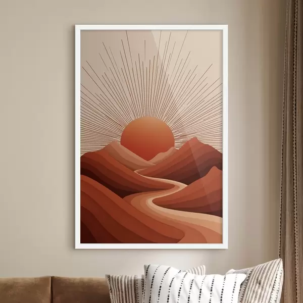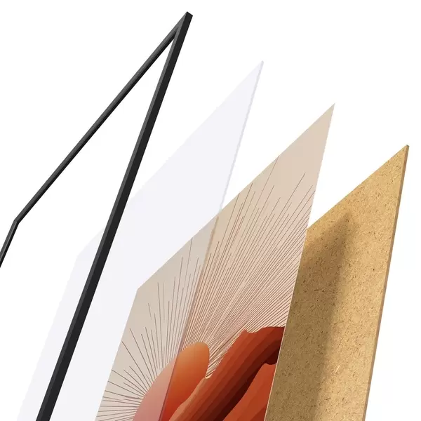 De poster bestaat uit een frame, plexiglas, geprinte afbeelding en spaanplaat achterkant. De poster kan meteen aan de muur worden gehangen dankzij de bevestigingen op de achterkant.