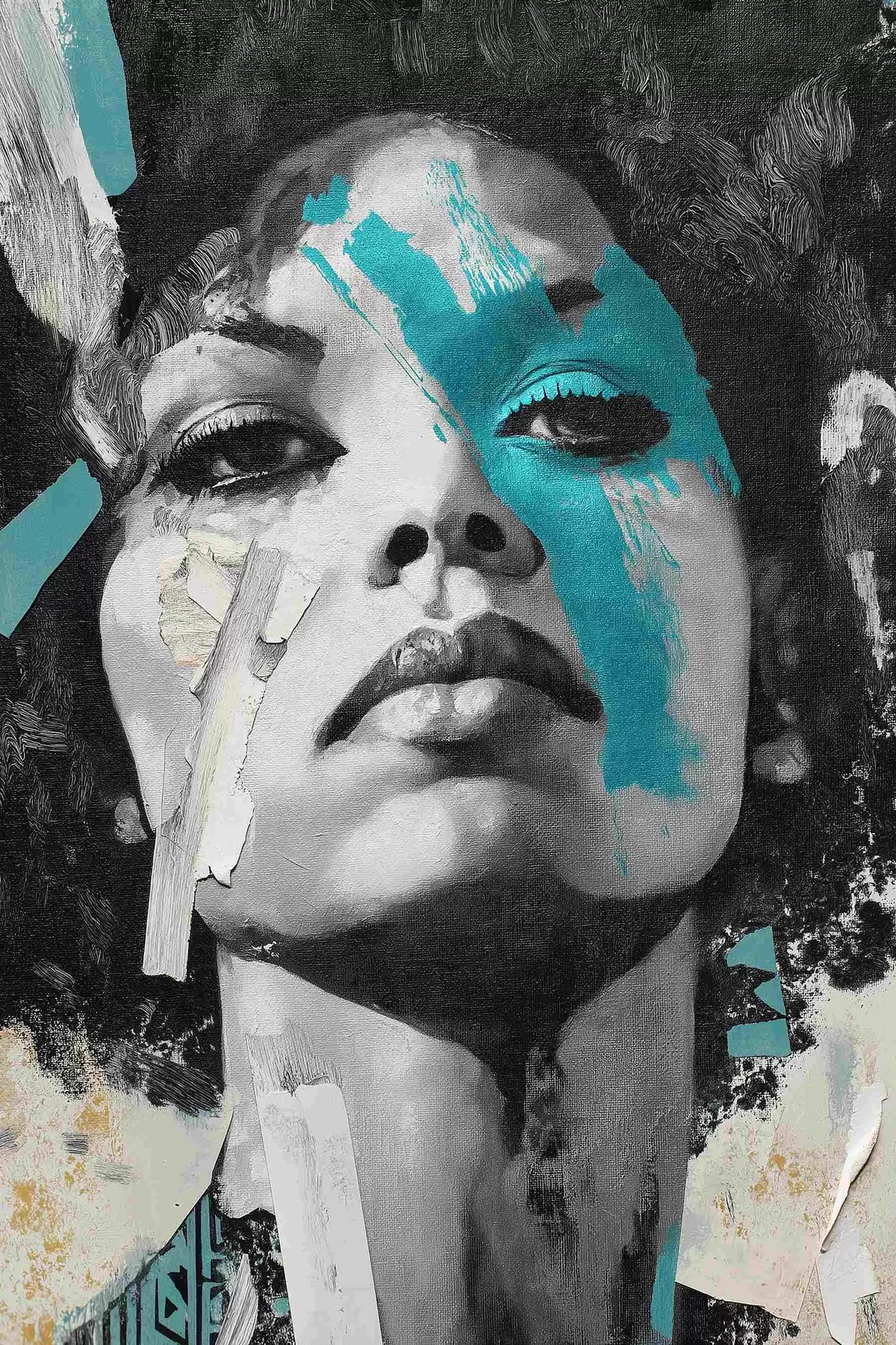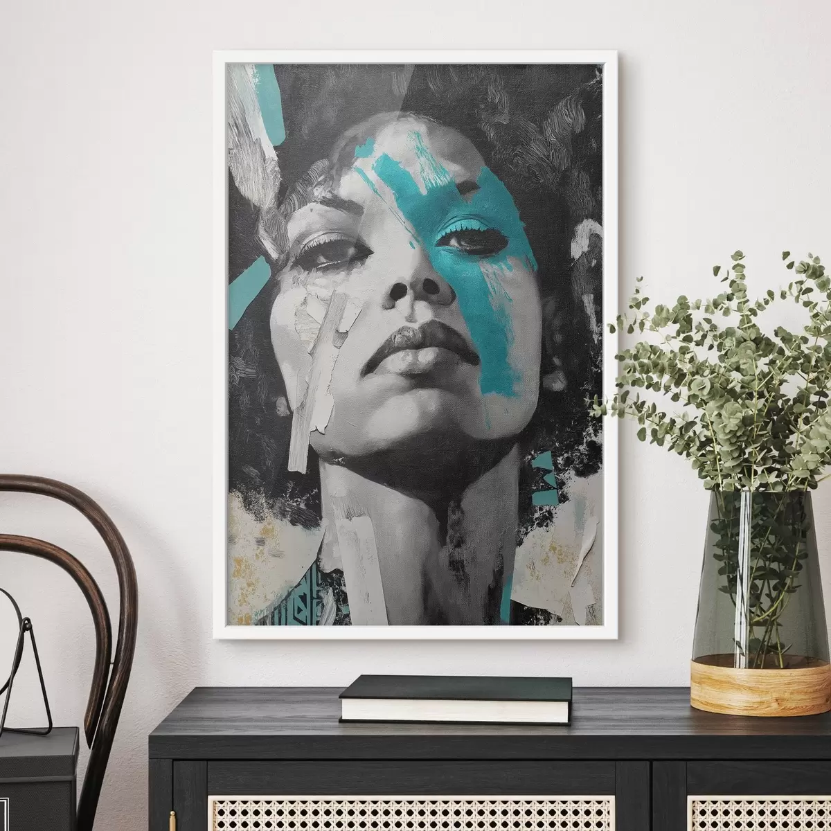 Poster Gemengde-media-portret met fragmenten van kleurstreken en texturen Nr f45416