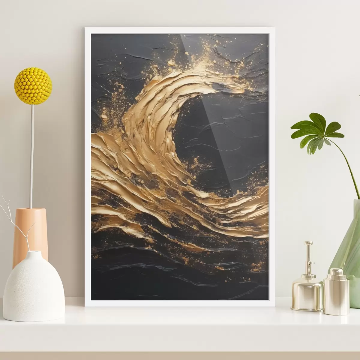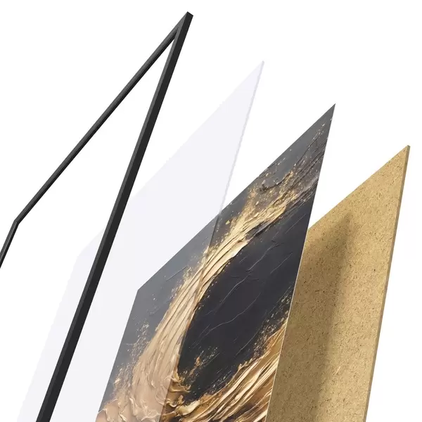 De poster bestaat uit een frame, plexiglas, geprinte afbeelding en spaanplaat achterkant. De poster kan meteen aan de muur worden gehangen dankzij de bevestigingen op de achterkant.