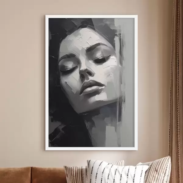 Poster Zwart-wit portret van een vrouw met gesloten ogen Nr f45479