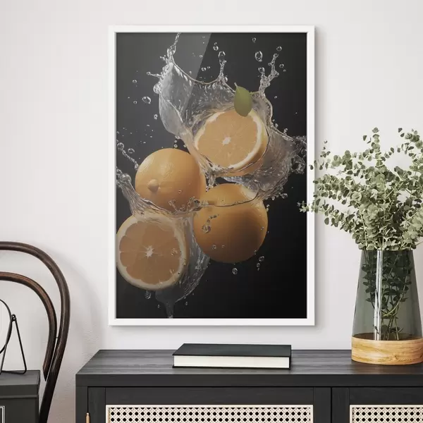 Poster Sappige sinaasappels in water spatten Nr f45526