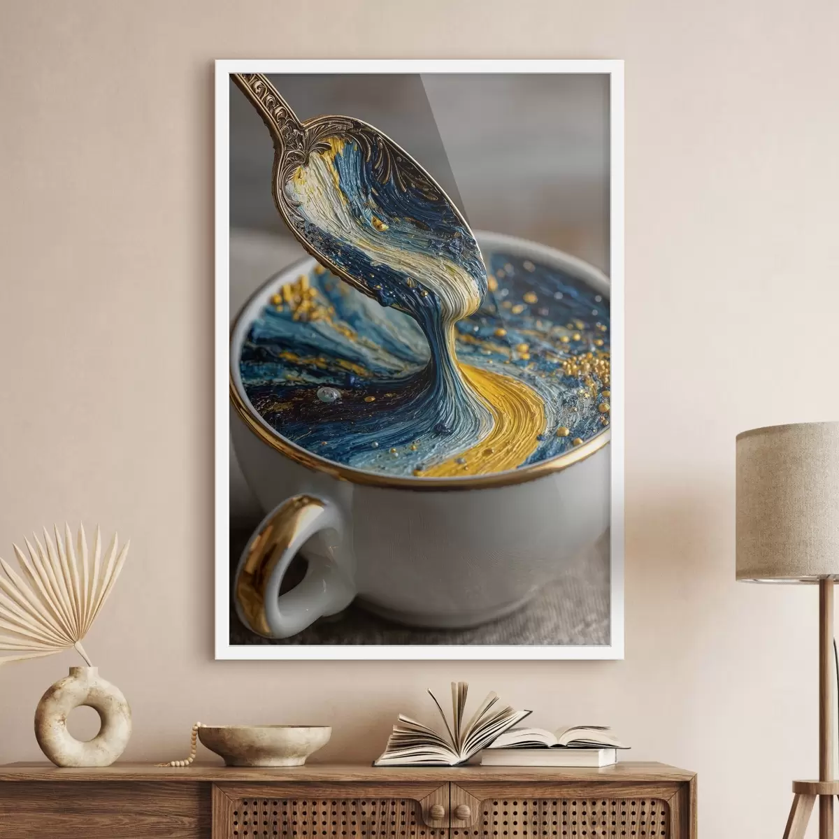 Poster Abstracte compositie: gemengde kleuren in een kopje in Van Gogh-stijl Nr f45545