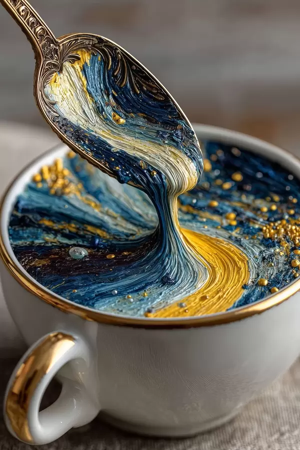 Poster Abstracte compositie: gemengde kleuren in een kopje in Van Gogh-stijl f45545