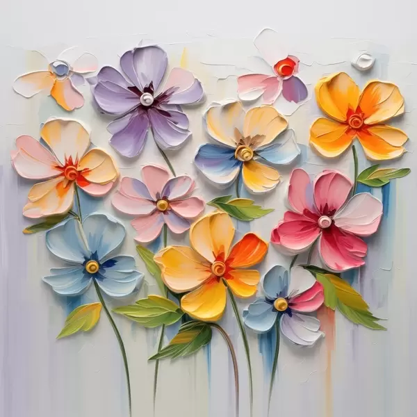 Poster Bloemstilleven: veelkleurige bloemen in impasto techniek Nr f45598