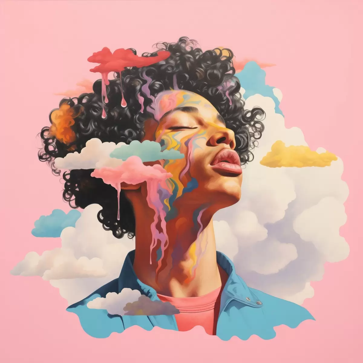Poster Dromer in de wolken in aquarelstijl Nr f45636