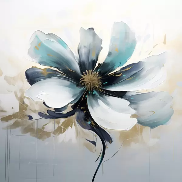 Poster Turquoise bloem in olieverfschilderijstijl Nr f45641