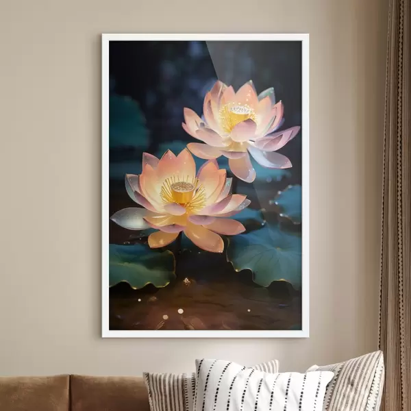 Poster Delicate lotusbloemen op het water in realistische stijl Nr f45644