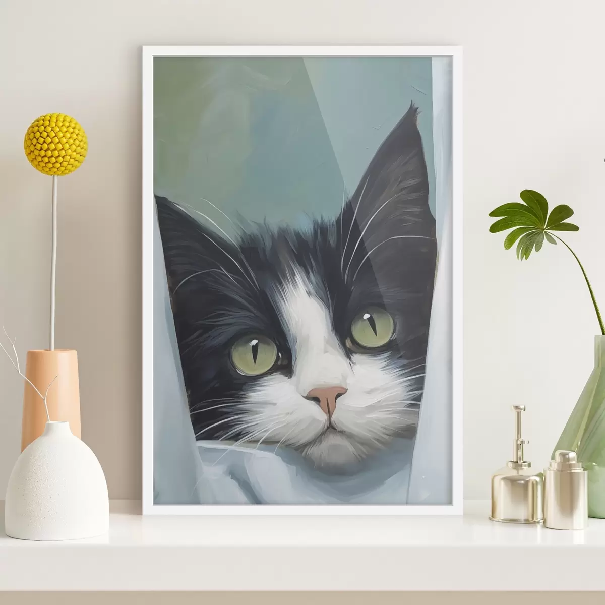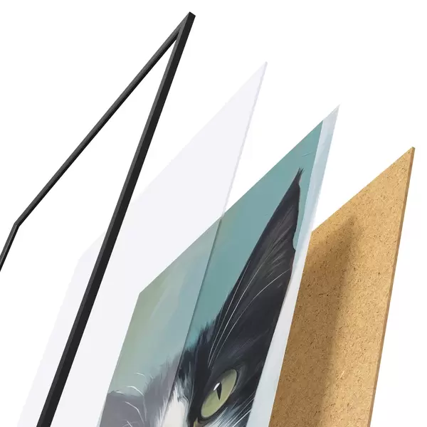 De poster bestaat uit een frame, plexiglas, geprinte afbeelding en spaanplaat achterkant. De poster kan meteen aan de muur worden gehangen dankzij de bevestigingen op de achterkant.