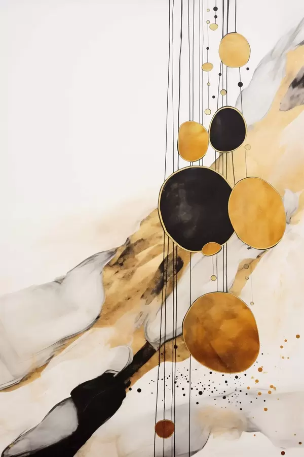 Poster Abstracte oranje en zwarte cirkels op een lichte achtergrond Nr f45693