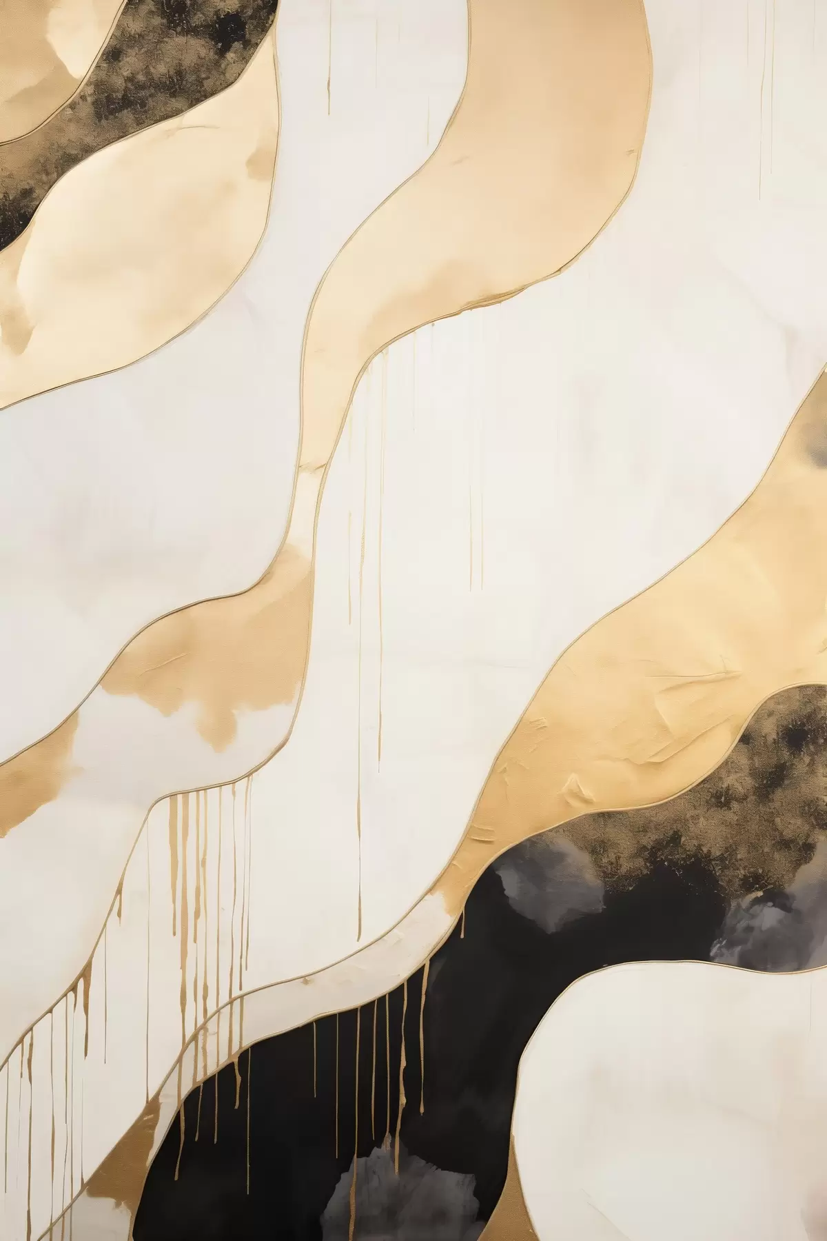 Poster Abstracte oranje en zwarte golvende lijnen Nr f45694