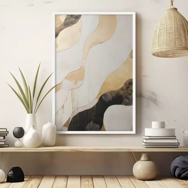 Poster Abstracte oranje en zwarte golvende lijnen f45694