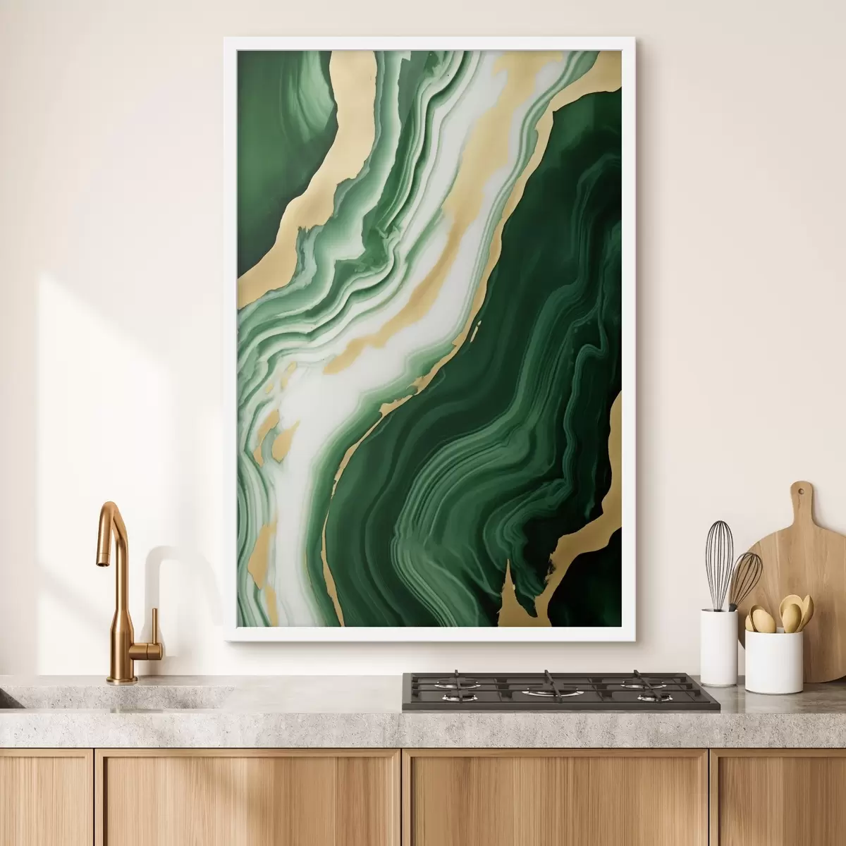Poster Groen-wit-geel marmeren texturen Nr f45695
