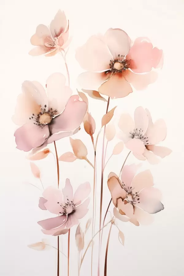Poster Aquarelroze bloemen op dunne stelen Nr f45701