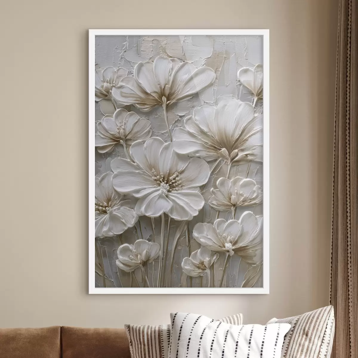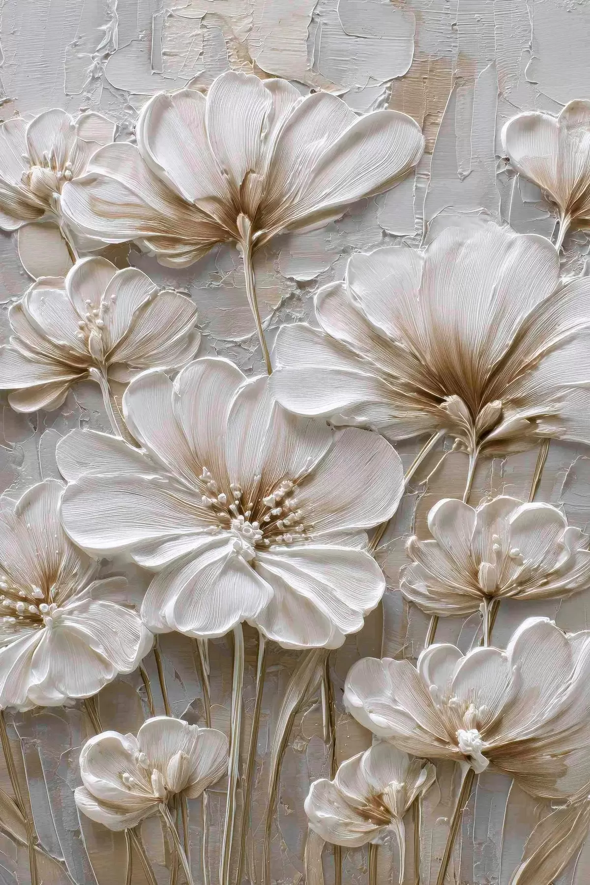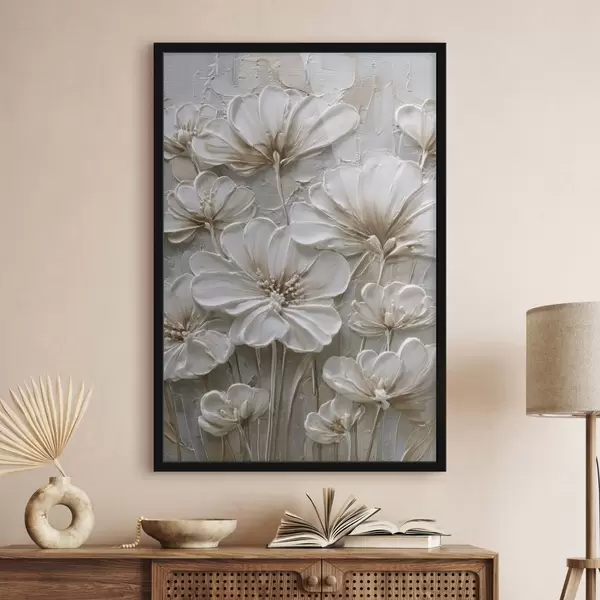 Poster crèmekleurige bloemen in imitatie-impastostijl Nr f45712