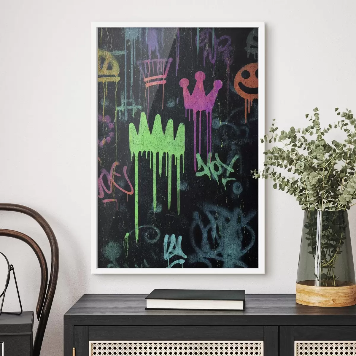 Poster heldere straatkunst op een donkere achtergrond Nr f45718