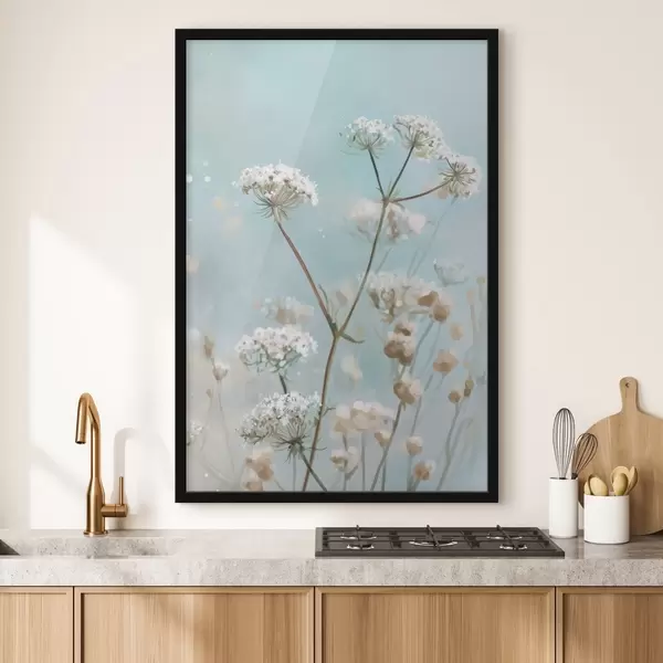 Poster Queen Anne's Lace-bloemen in aquarelstijl op een blauwe achtergrond Nr f45722