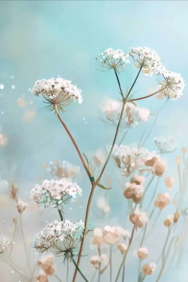 Poster Queen Anne's Lace-bloemen in aquarelstijl op een blauwe achtergrond Nr f45722