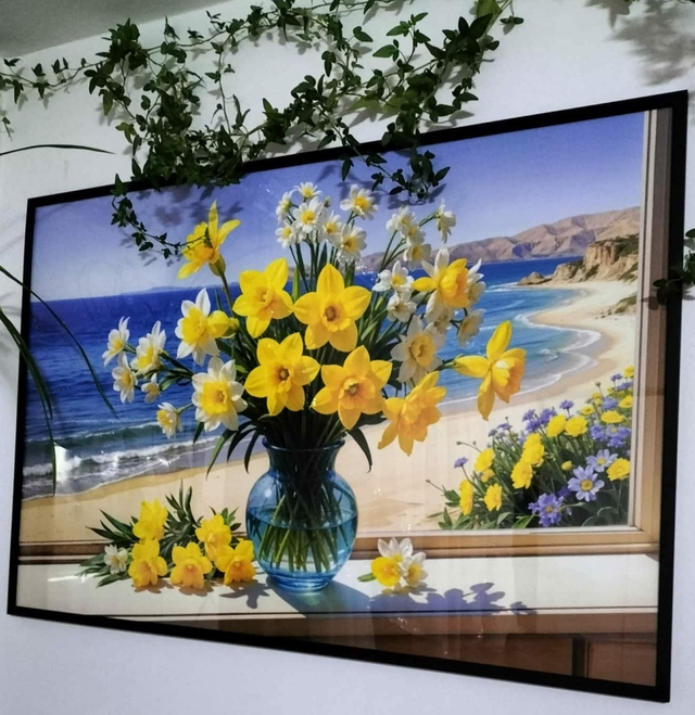 Je kunt het schilderij ophangen aan schroeven. Hiervoor leveren we bevestigingen bij onze foto's, zodat je de foto gemakkelijk kunt ophangen.