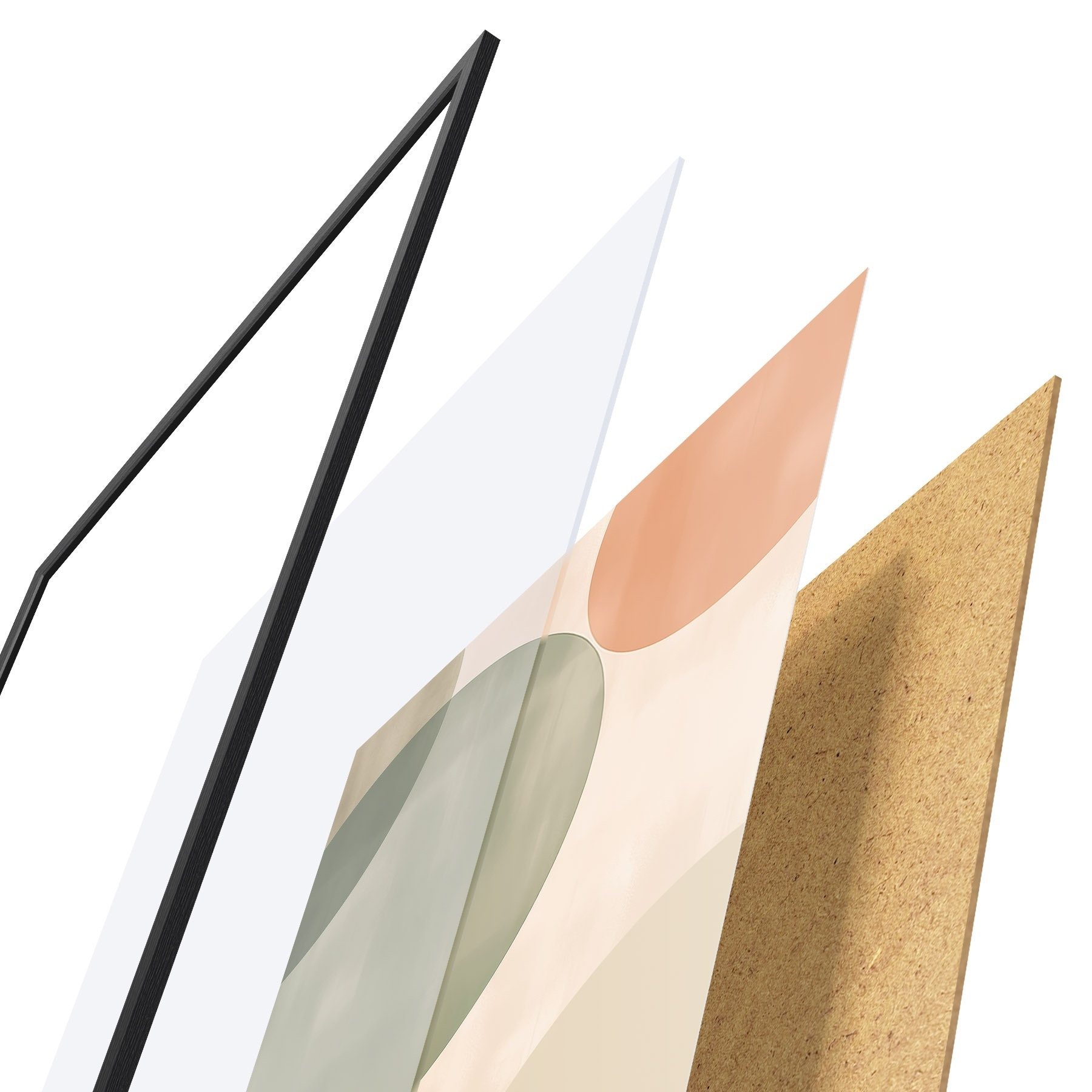 De poster bestaat uit een frame, plexiglas, geprinte afbeelding en spaanplaat achterkant. De poster kan meteen aan de muur worden gehangen dankzij de bevestigingen op de achterkant.