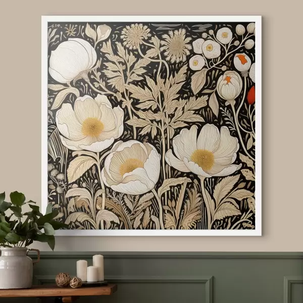 Poster Crèmekleurige bloemen en grassen op een zwarte achtergrond f45816