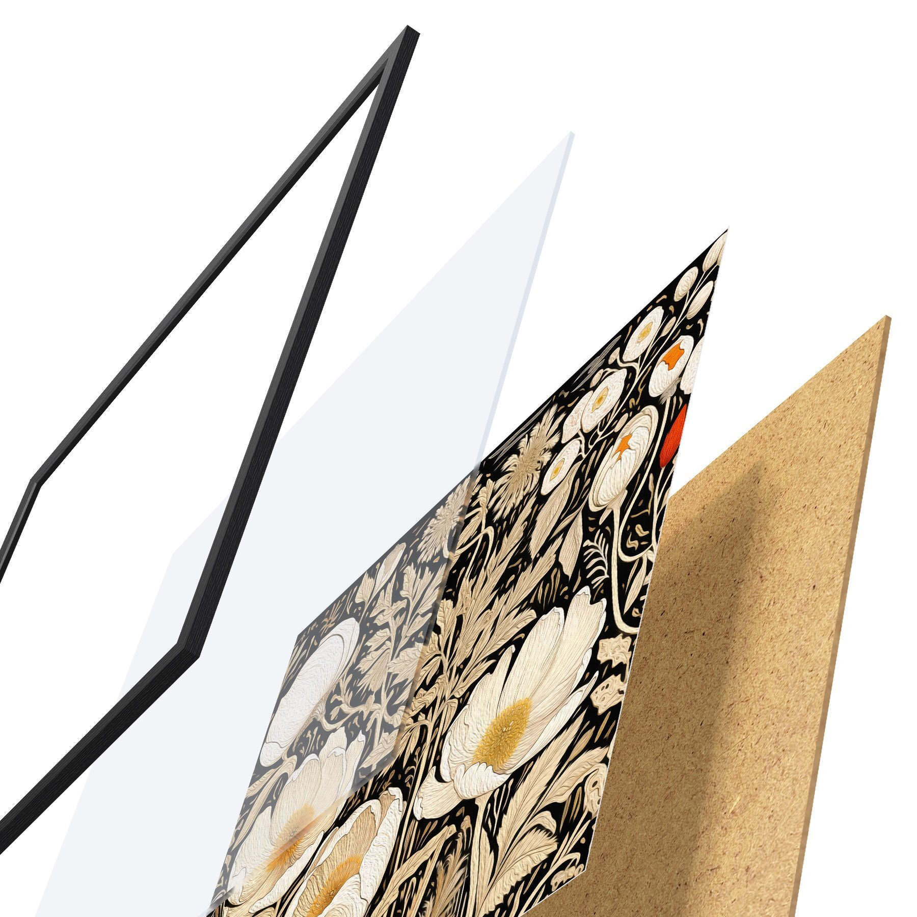 De poster bestaat uit een frame, plexiglas, geprinte afbeelding en spaanplaat achterkant. De poster kan meteen aan de muur worden gehangen dankzij de bevestigingen op de achterkant.