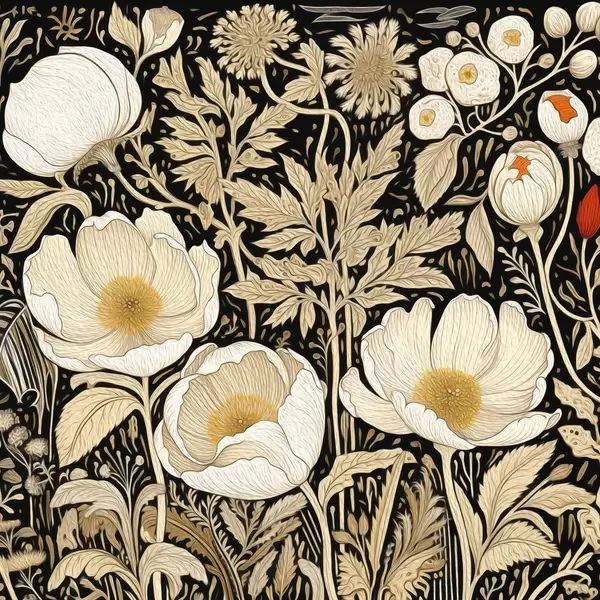Poster Crèmekleurige bloemen en grassen op een zwarte achtergrond f45816
