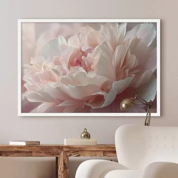 Poster Bloeiende pioenroos in roze en beige tinten Nr f45825