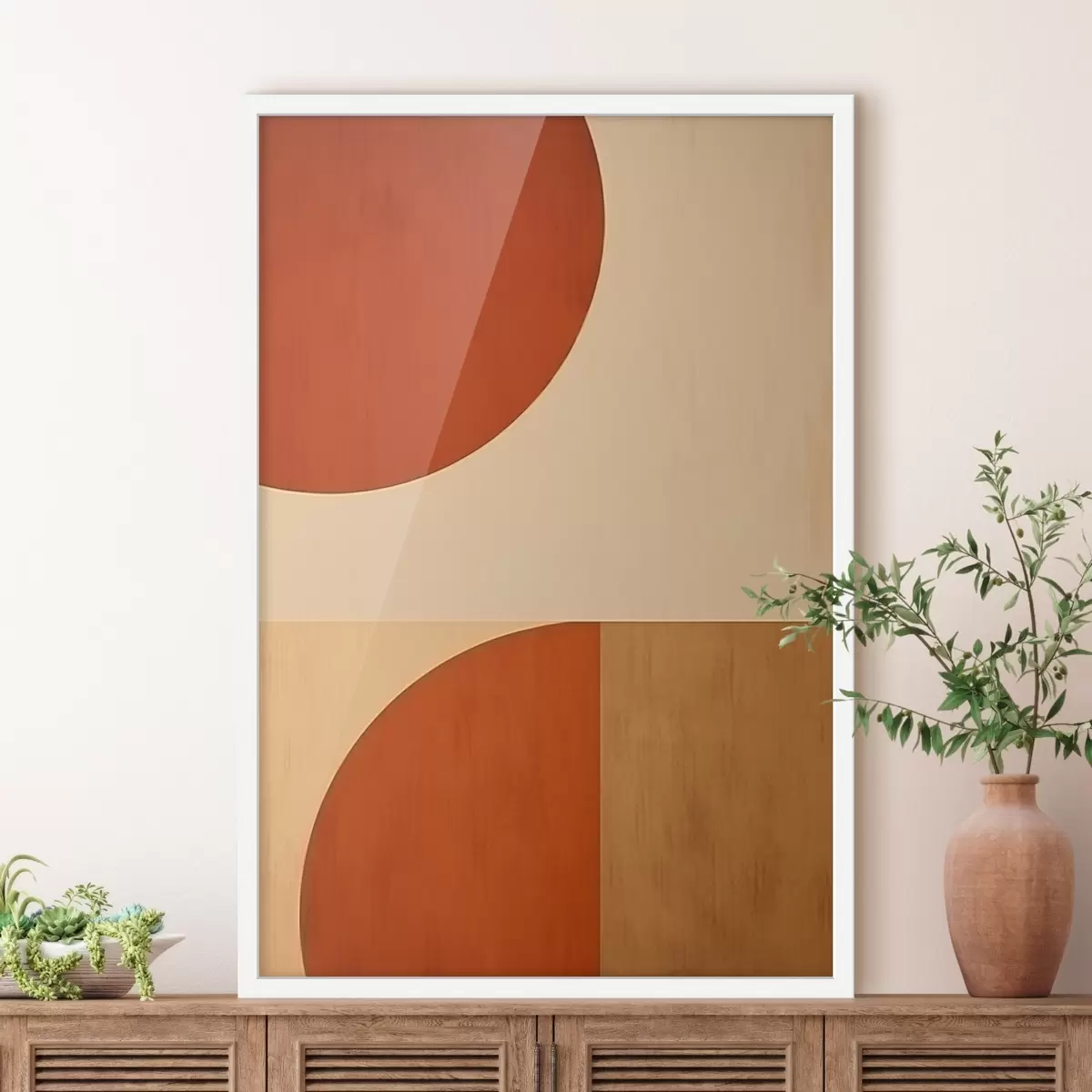 De poster bestaat uit een frame, plexiglas, geprinte afbeelding en spaanplaat achterkant. De poster kan meteen aan de muur worden gehangen dankzij de bevestigingen op de achterkant.