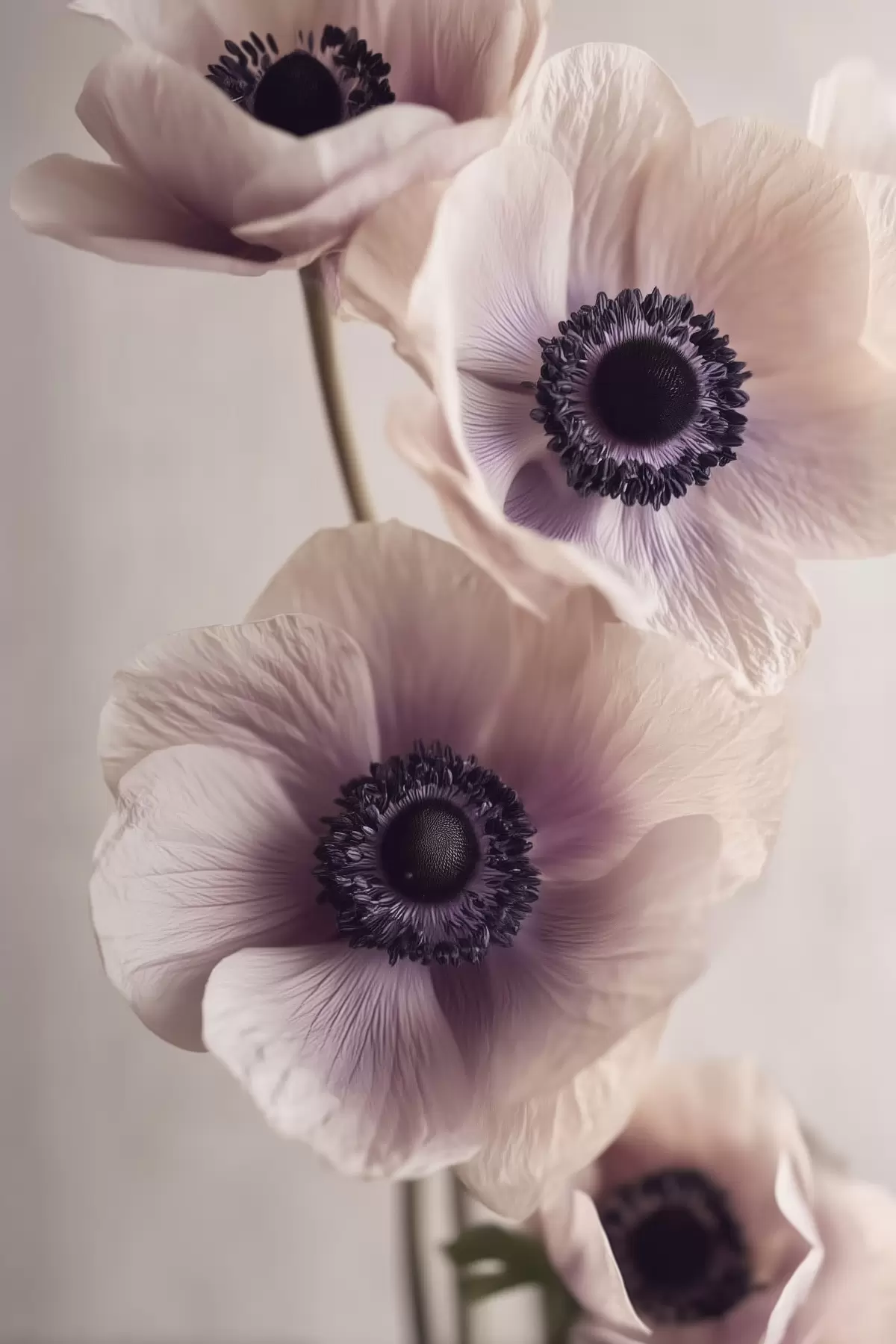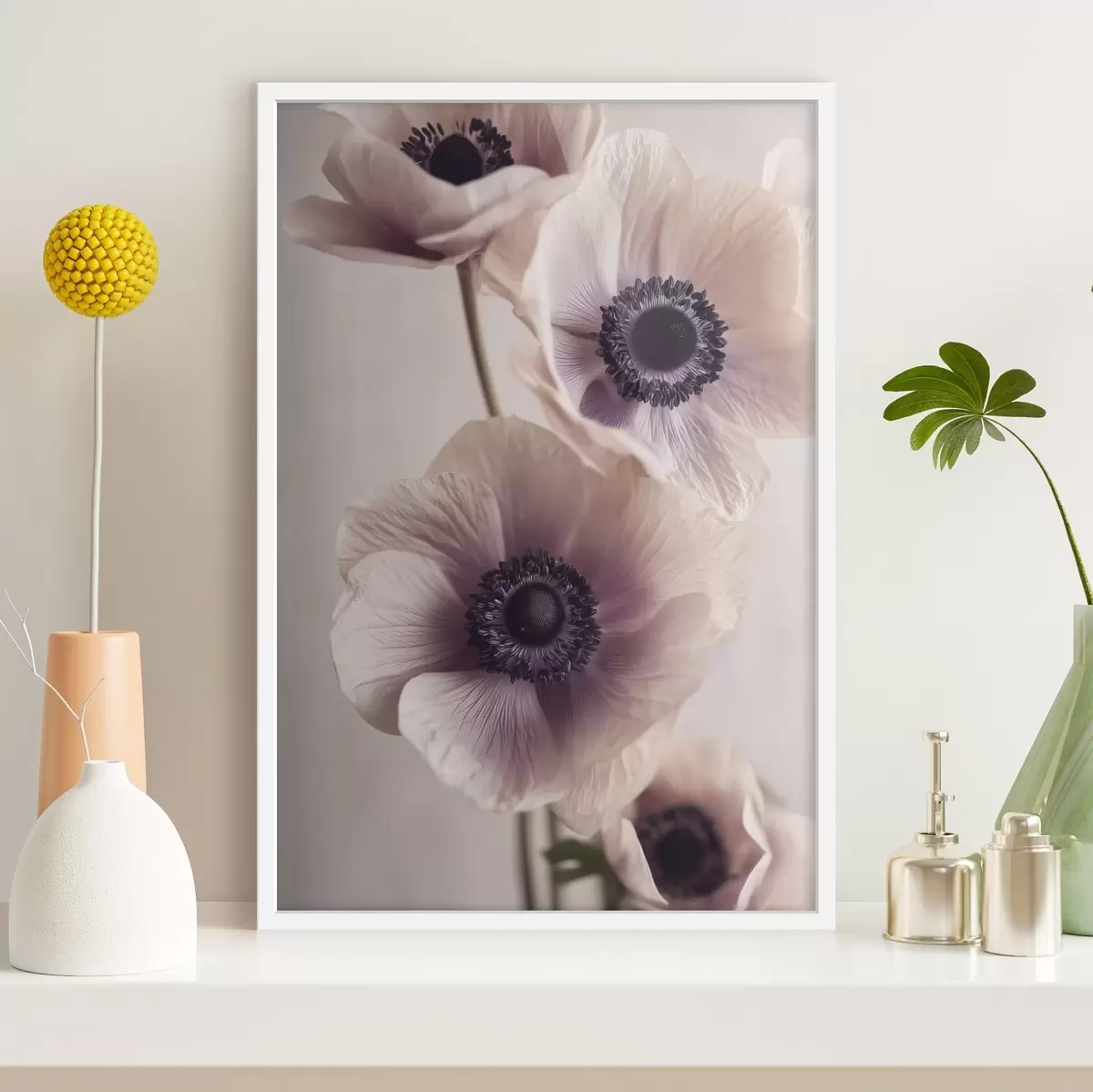 Poster Delicate anemonen met donkere hartjes, pastelkleurig Nr f45875