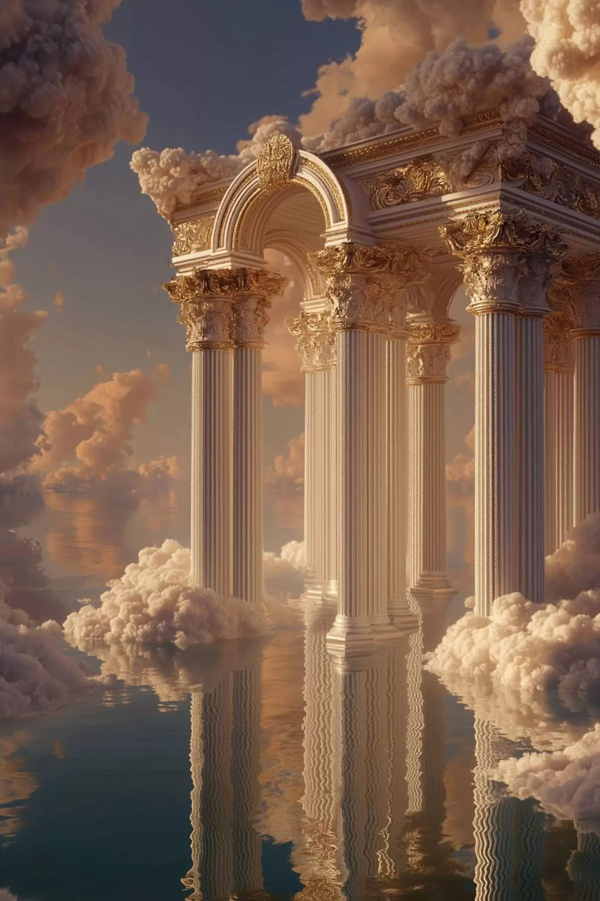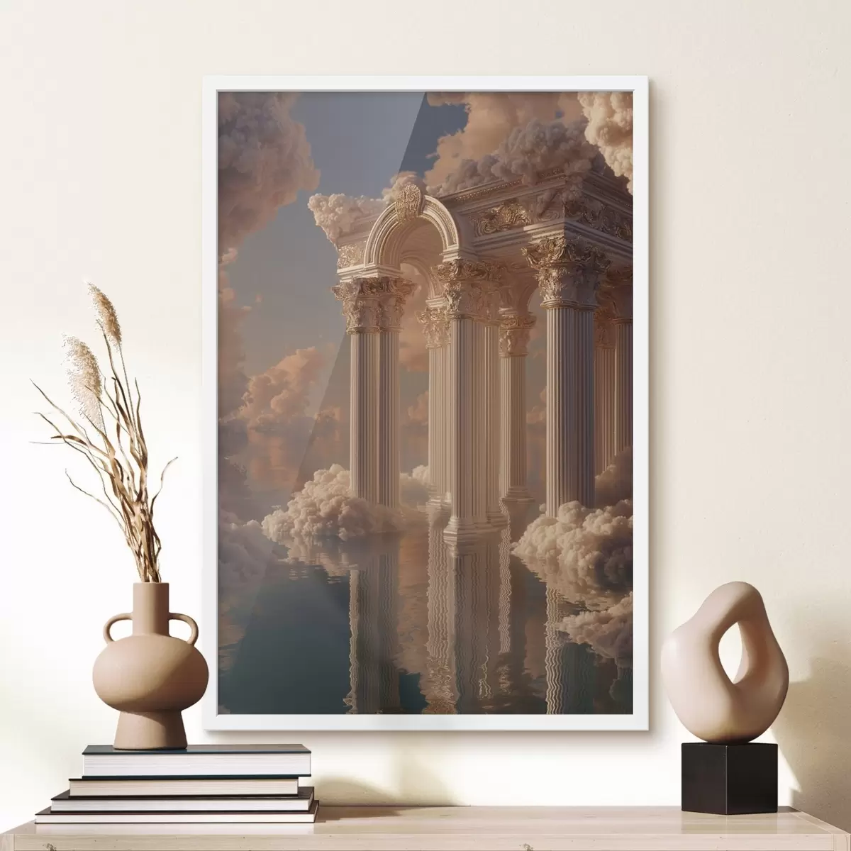 Poster Kolommen in de wolken, reflecties op het water Nr f45881