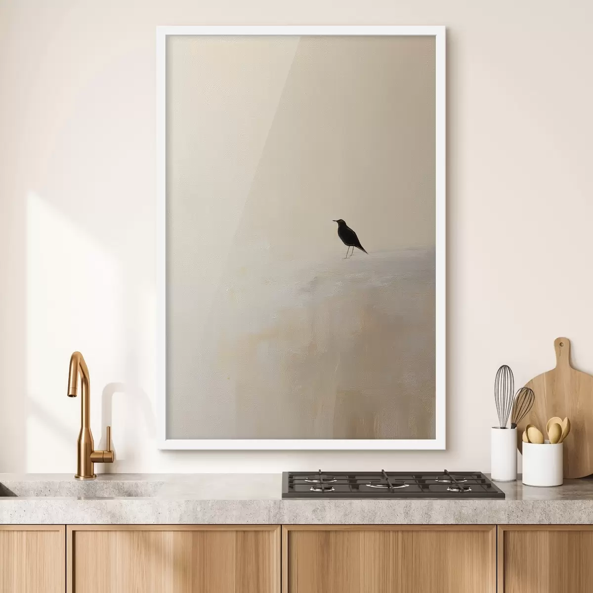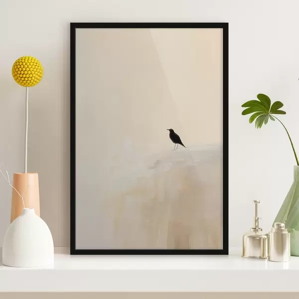 Poster Eenzame vogel op een warme beige achtergrond Nr f45882