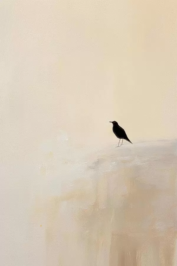 Poster Eenzame vogel op een warme beige achtergrond Nr f45882