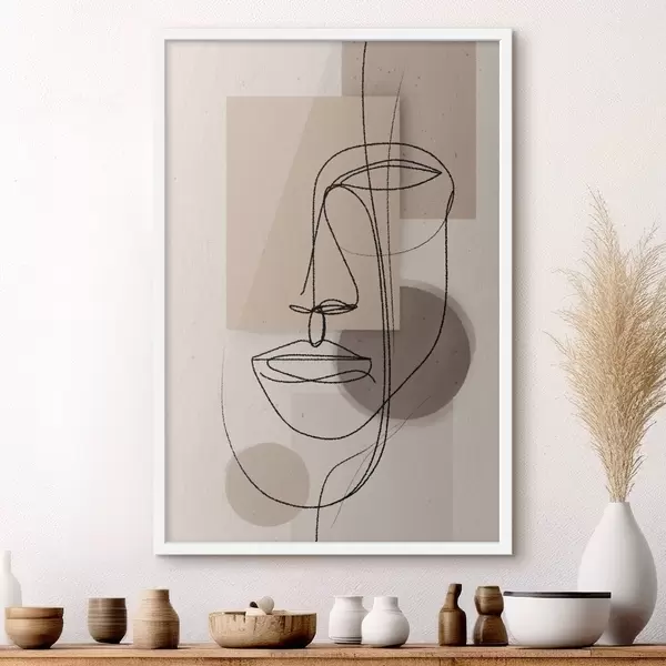 Poster Lijnportret boven beige geometrische vormen Nr f45886