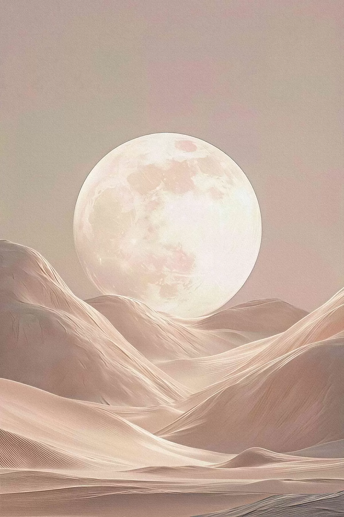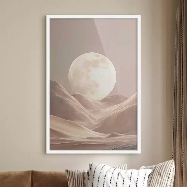 Poster Maan boven zandduinen in roze tinten Nr f45892