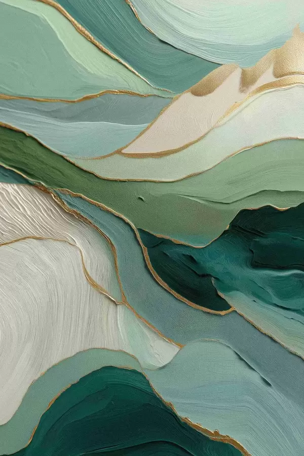 Poster Gelaagde groene abstractie met gele lijnen en diepte Nr f45902