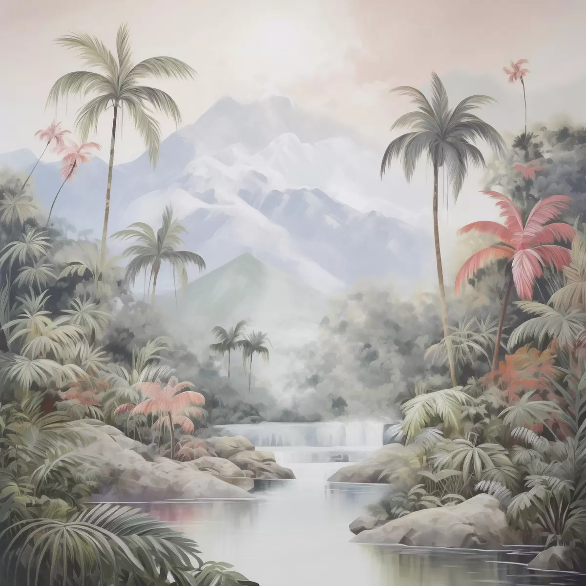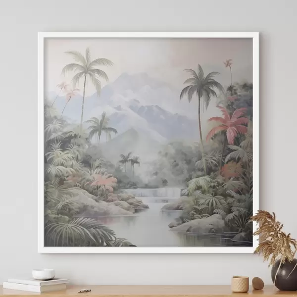 Poster Rivier in tropisch bos voor de bergen Nr f45913