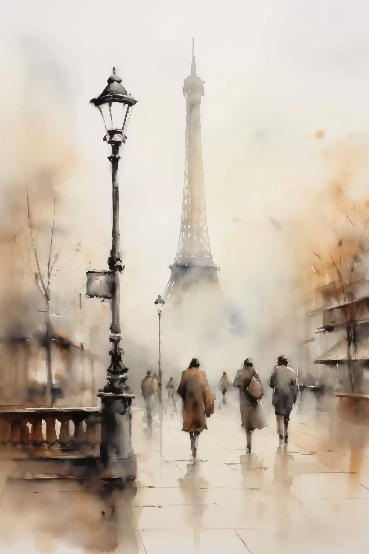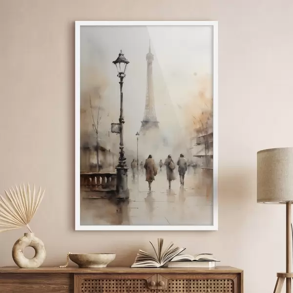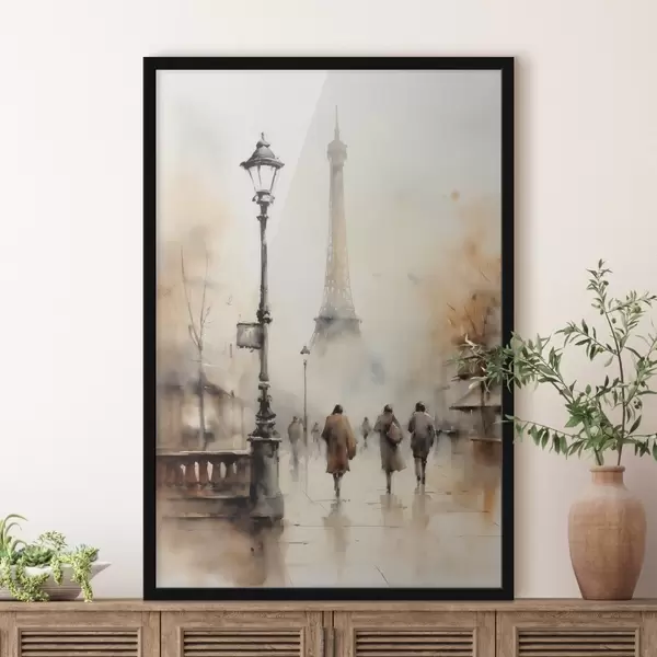 Poster Een regenachtige herfstdag in Parijs met de Eiffeltoren op de achtergrond en vintage straatlantaarns Nr f45931