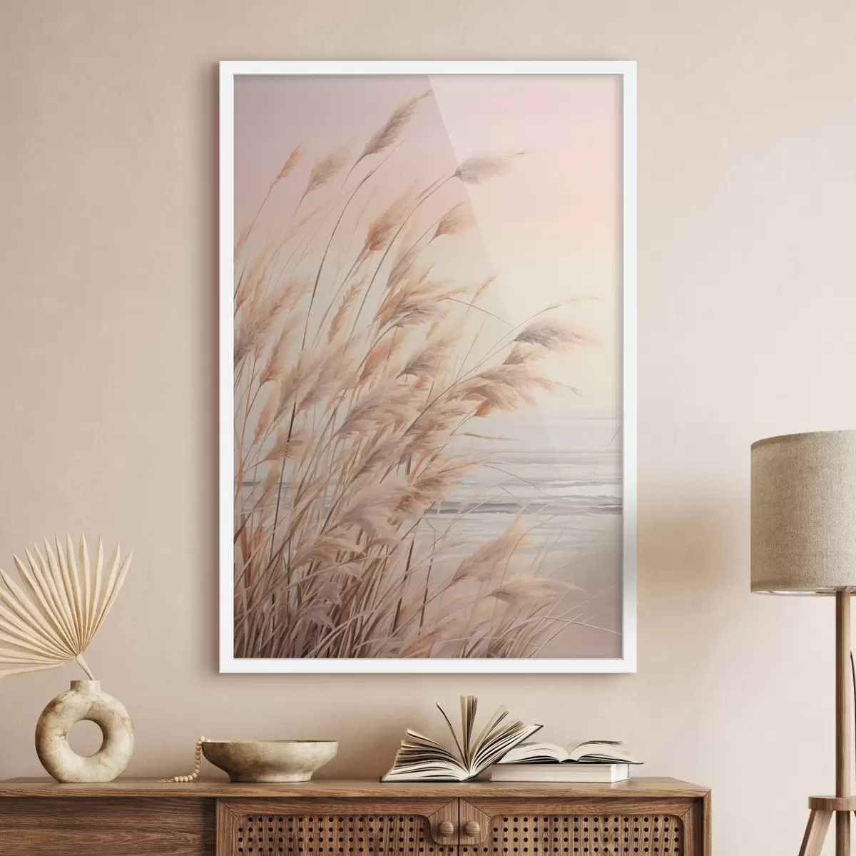 Poster Pampagras met pasteloranje kleurenpalet, lichtroze lucht, een rustig landschap Nr f45934