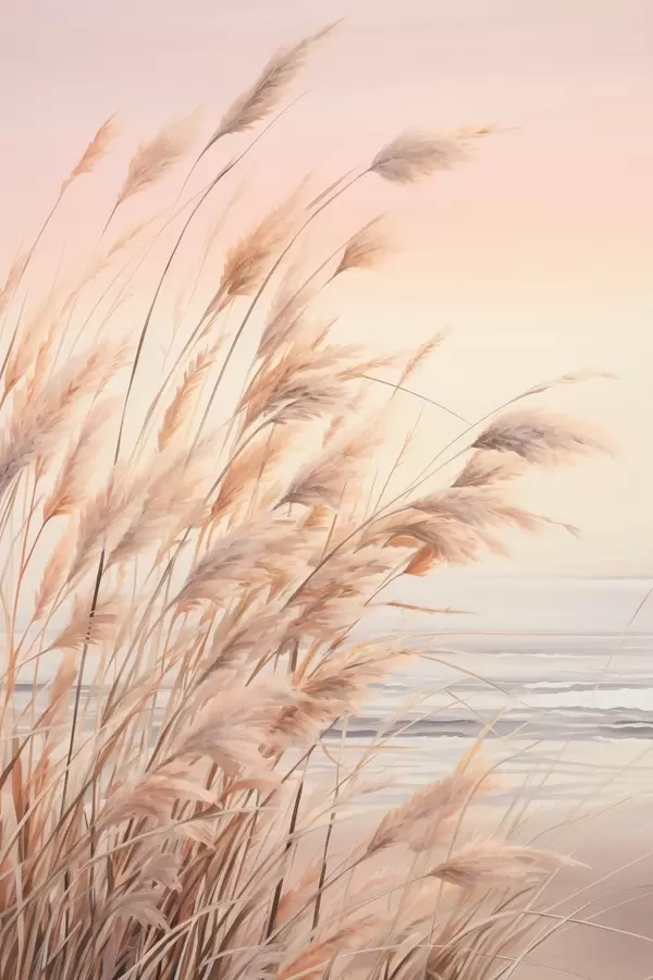 Poster Pampagras met pasteloranje kleurenpalet, lichtroze lucht, een rustig landschap Nr f45934