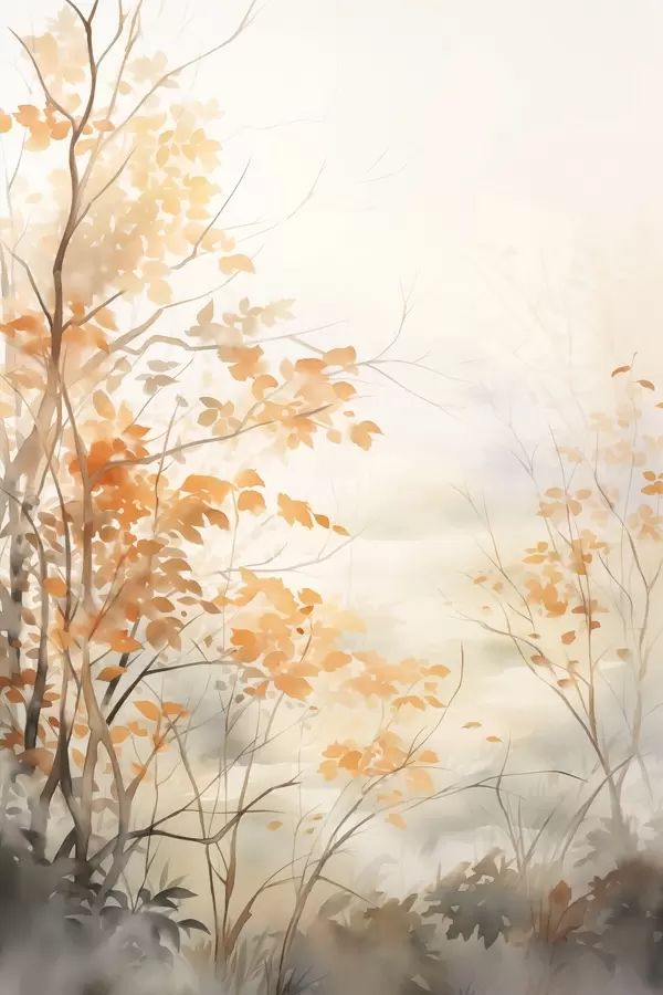 Poster Herfstbomen met oranje bladeren en takken, zachte aquarelstijl, delicate penseelstreken Nr f45941