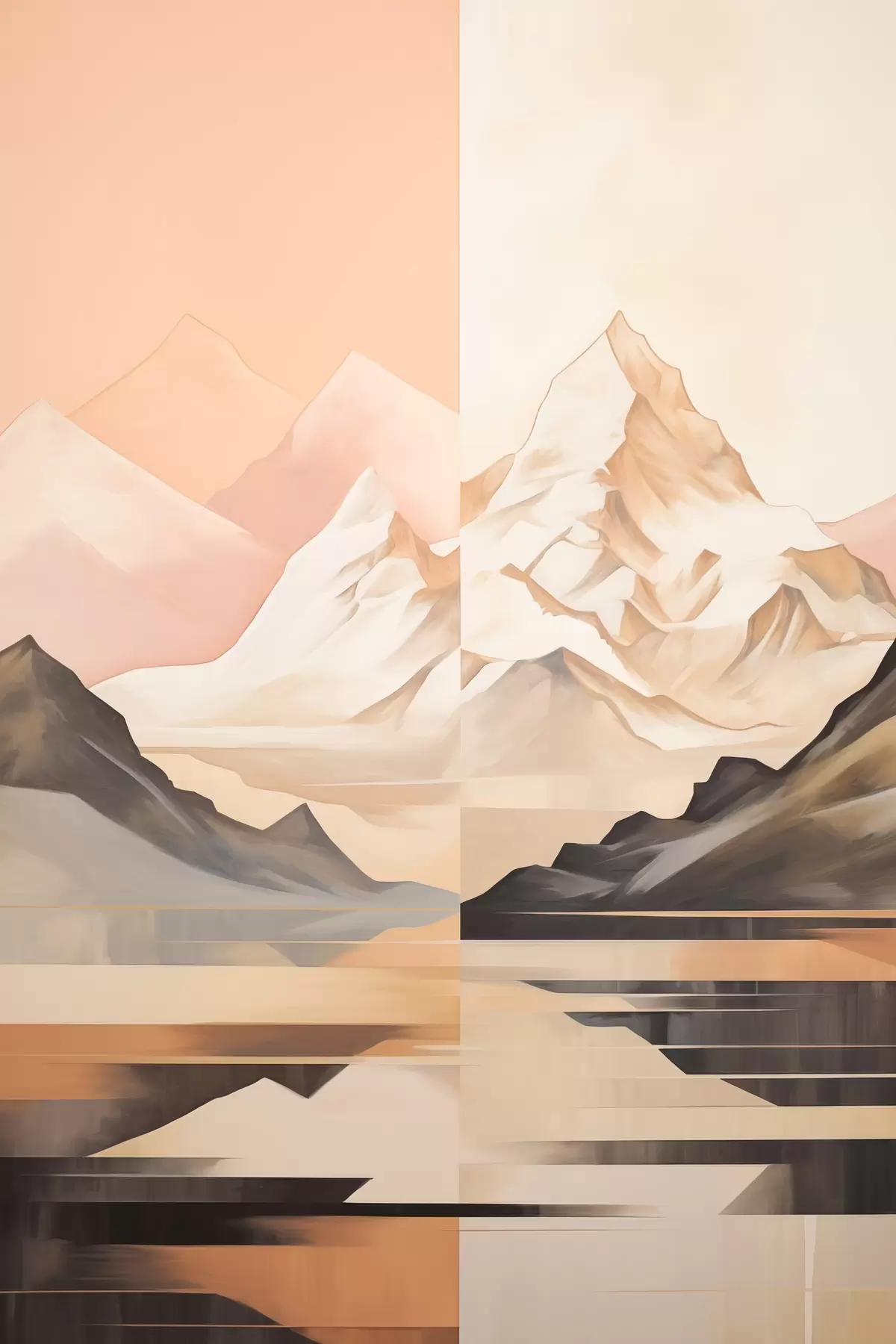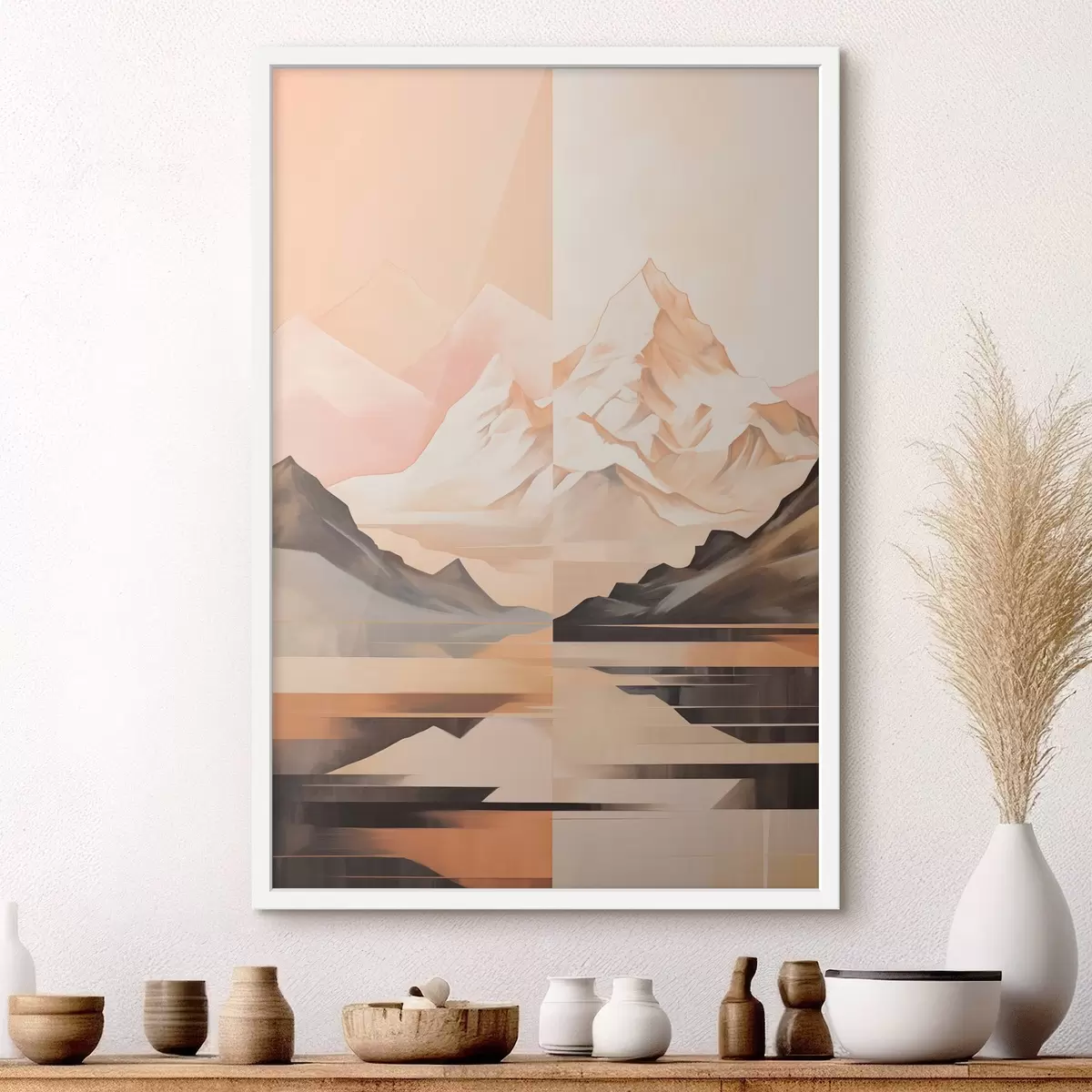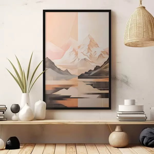 Poster Abstract landschap met bergen en een meer, pastelkleuren, minimalistische stijl Nr f45948