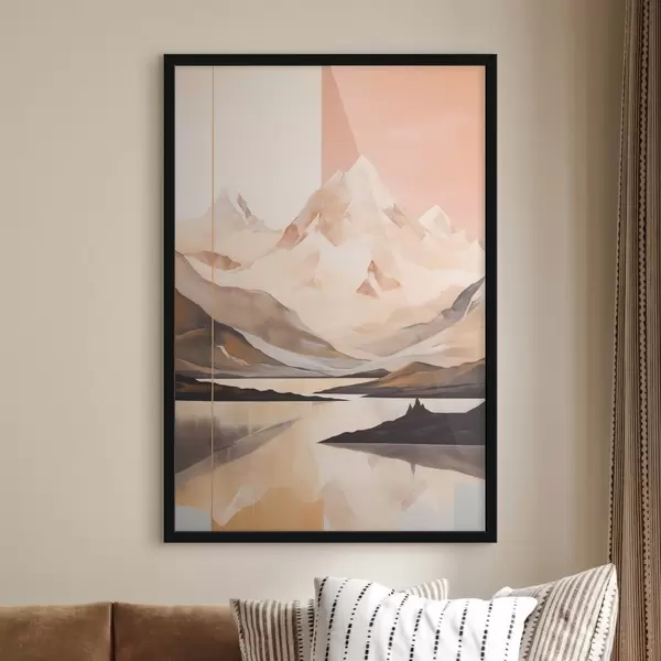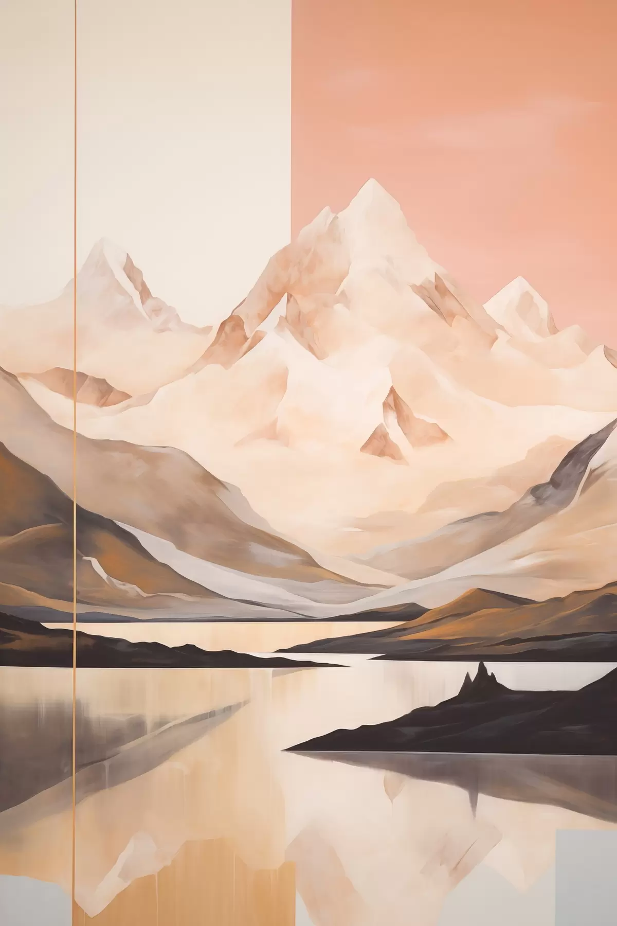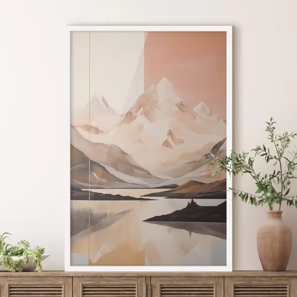Poster Abstract landschap met bergen en een meer, pastelkleuren, minimalistische stijl Nr f45949
