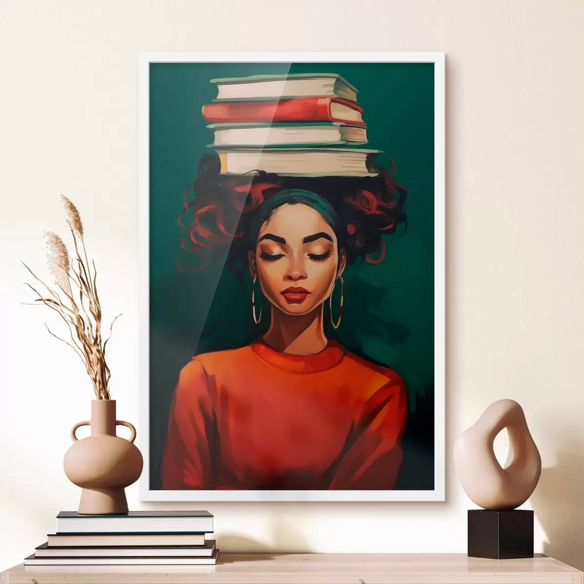 Poster Vrouw met boeken op haar hoofd Nr f45952