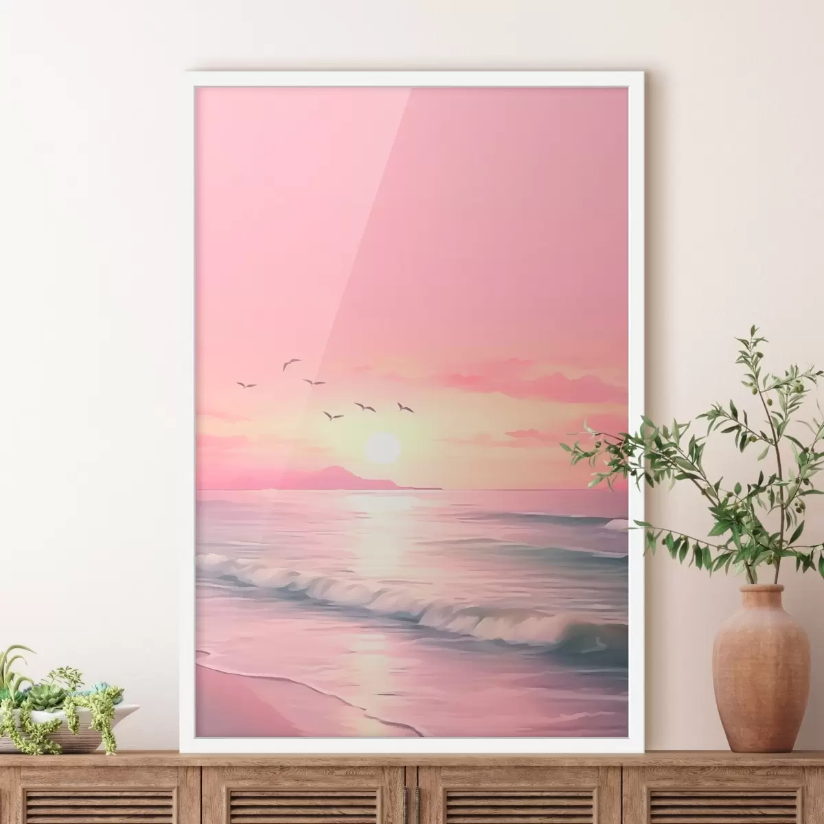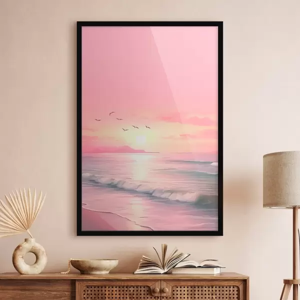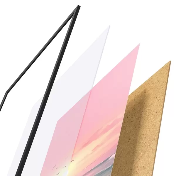 De poster bestaat uit een frame, plexiglas, geprinte afbeelding en spaanplaat achterkant. De poster kan meteen aan de muur worden gehangen dankzij de bevestigingen op de achterkant.