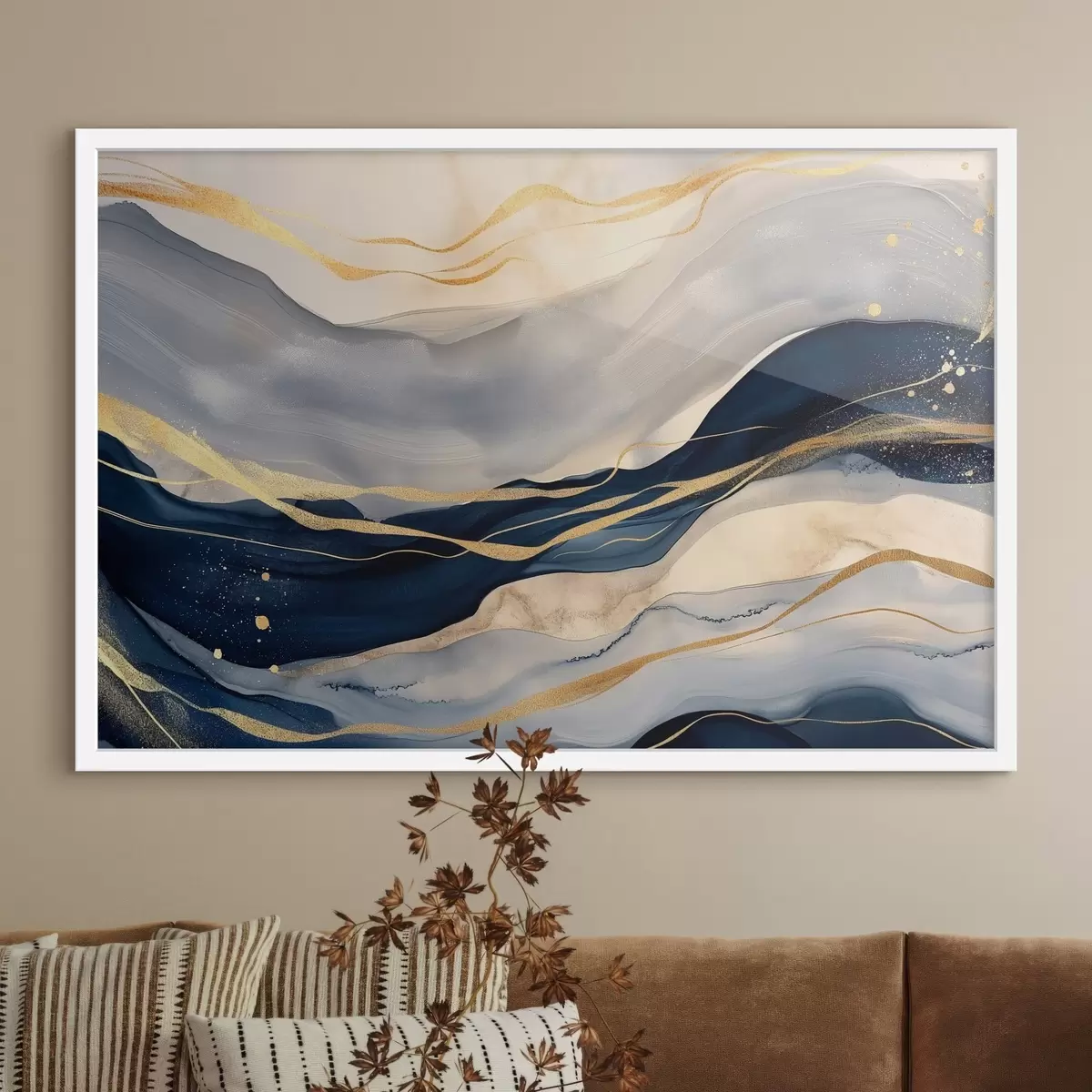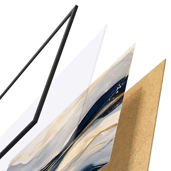 De poster bestaat uit een frame, plexiglas, geprinte afbeelding en spaanplaat achterkant. De poster kan meteen aan de muur worden gehangen dankzij de bevestigingen op de achterkant.