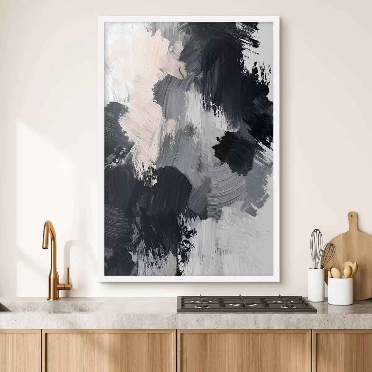 De poster bestaat uit een frame, plexiglas, geprinte afbeelding en spaanplaat achterkant. De poster kan meteen aan de muur worden gehangen dankzij de bevestigingen op de achterkant.