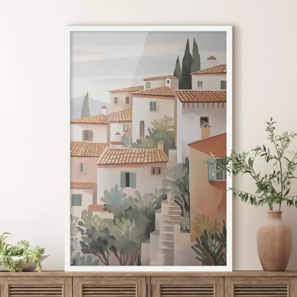 Je kunt het schilderij ophangen aan schroeven. Hiervoor leveren we bevestigingen bij onze foto's, zodat je de foto gemakkelijk kunt ophangen.