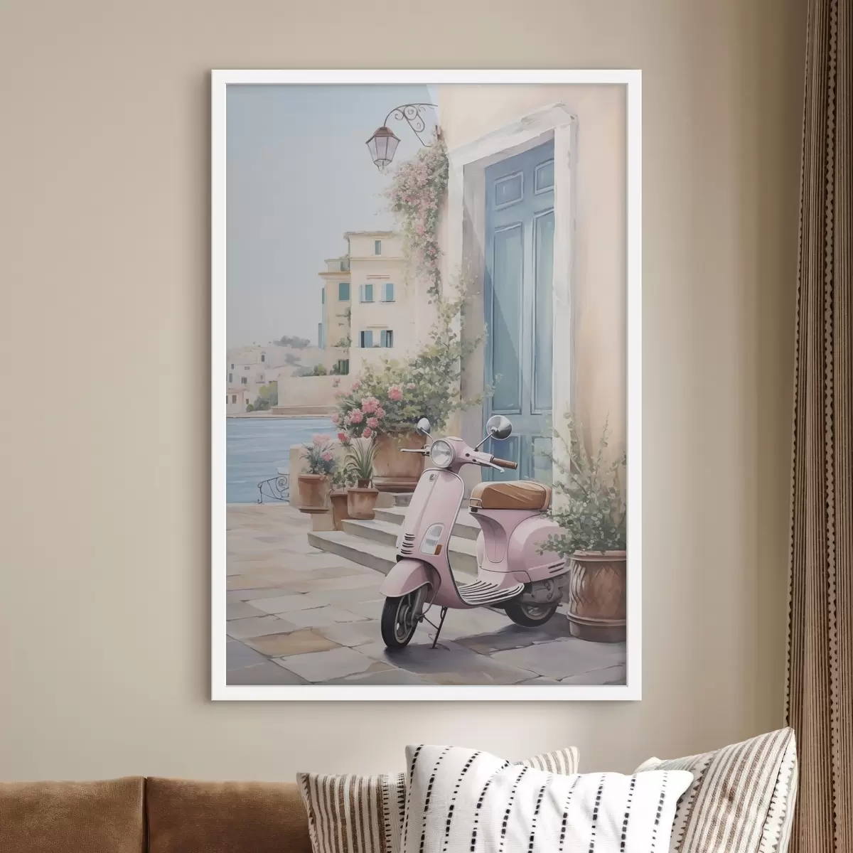 Je kunt het schilderij ophangen aan schroeven. Hiervoor leveren we bevestigingen bij onze foto's, zodat je de foto gemakkelijk kunt ophangen.